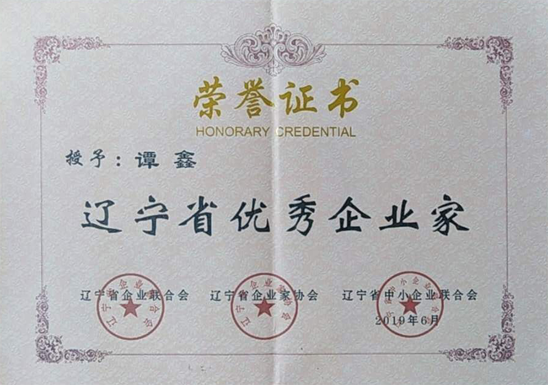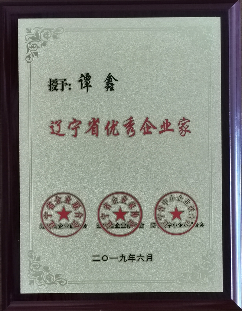 譚鑫總經(jīng)理2018年度遼寧省優(yōu)秀企業(yè)家榮譽(yù)證書