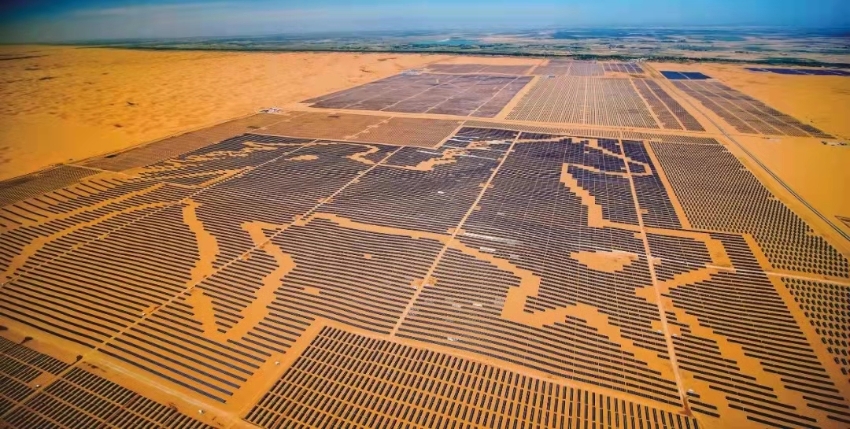 距離內蒙古達拉特電站正式運行已四年光景。自投入運行以來,內蒙古達拉特電站累計輸出綠電約23.12億千瓦時,相當于節省了76萬噸標準煤,減少了185萬噸的二氧化碳排放。為了提高光伏治沙效能,該電站除了進行板上發電,還在板間種植了黃芪、沙棗、黃芩等植物,實現了“林光互補”、防風固沙的作用,有效遏制了庫布齊沙漠擴展。不僅為當地居民帶來了經濟效益,更創造了社會效益,實現沙漠治理和生態修復的雙重意義。