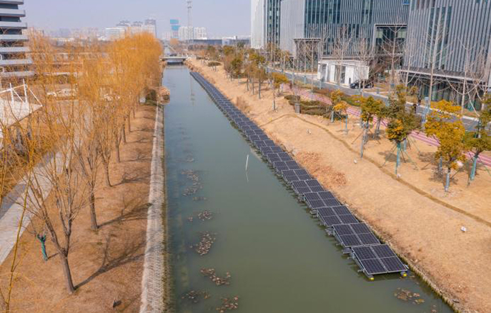 當(dāng)土地資源日益稀缺,開發(fā)廣闊的水域空間已成為光伏產(chǎn)業(yè)的重要增長(zhǎng)點(diǎn)。陽(yáng)光能源控股有限公司(以下簡(jiǎn)稱“陽(yáng)光能源”)旗下江蘇新陽(yáng)光智頂科技有限公司(以下簡(jiǎn)稱“江蘇新陽(yáng)光”)在江蘇鹽城西伏河打造的首個(gè)防眩光漂浮式光伏電站,實(shí)現(xiàn)了“扎根水面,向水要電”,這不僅是一座電站,更是一套成熟的、可復(fù)制的水上光伏投資解決方案。