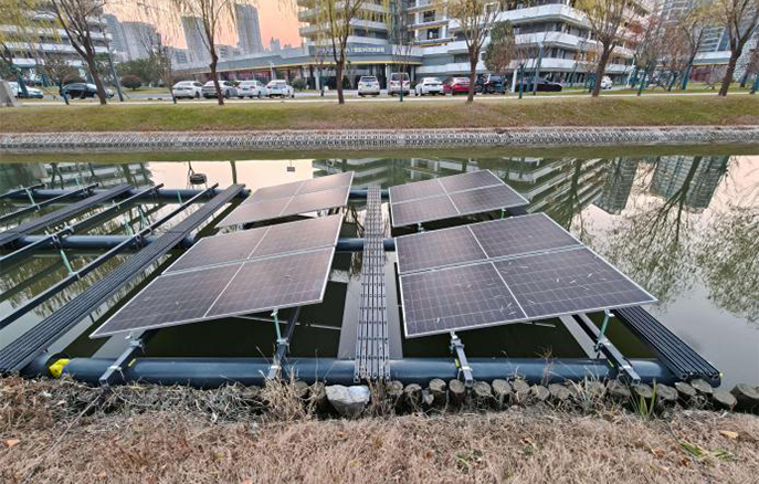 鹽城西伏河防眩光漂浮式光伏電站采用了先進(jìn)的漂浮式光伏系統(tǒng)設(shè)計(jì),其核心在于精密的錨固系統(tǒng),該系統(tǒng)如同水下根系,有效抵御風(fēng)浪沖擊,確保光伏陣列的穩(wěn)固性。這一技術(shù)突破不僅釋放了水域空間的巨大能源潛能,更標(biāo)志著“向水要電”新時(shí)代的開啟。