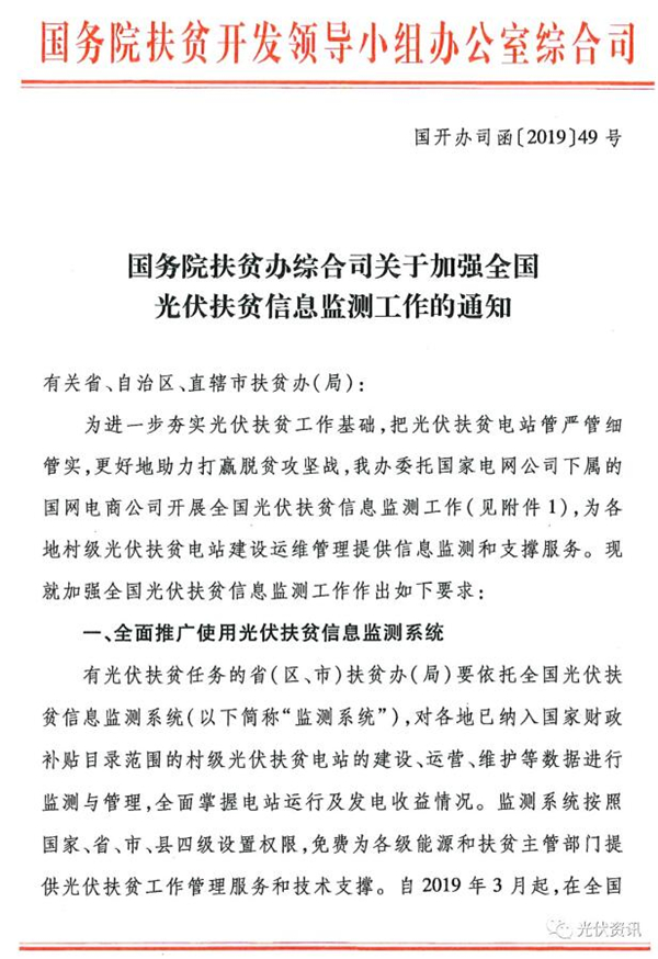 日前,國務院扶貧辦綜合司關于加強全國光伏扶貧信息監測工作的通知,原文如下: