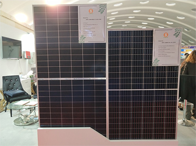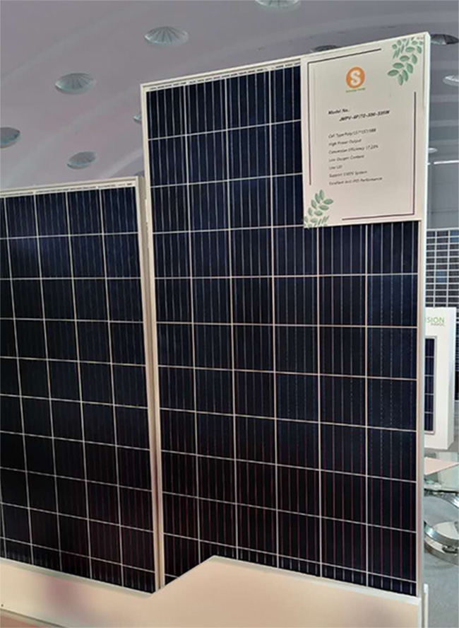 此次展會,陽光能源品牌展出三款組件,分別為單晶雙玻半片9BB-410W組件、單晶常規半片5BB-330W組件、多晶72片330W組件和多晶60片275W組件,其中,多晶275W和330W組件由於性價比高,在當地水泵系統和農業專案中應用廣泛,引起熱銷浪潮。另外,單晶雙玻半片9BB-410W組件也受到很多訪客的關注和諮詢。