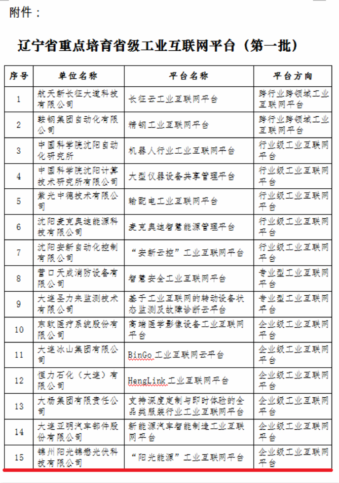 近日,遼寧省工業和資訊化廳公佈了2020年15個重點培育省級工業互聯網平臺(第一批)名單。錦州陽光錦懋光伏科技有限公司獲得“錦州首家企業級工業互聯網平臺”殊榮。這是錦州陽光錦懋光伏科技繼“遼寧名牌產品”後,獲得的又一個省級政府榮譽,彰顯了錦懋光伏科技有限公司在技術創新、科研實力與創新成果等方面受到了高度認可,一定程度上也代表了光伏行業在數位化經濟發展方面的高水準。